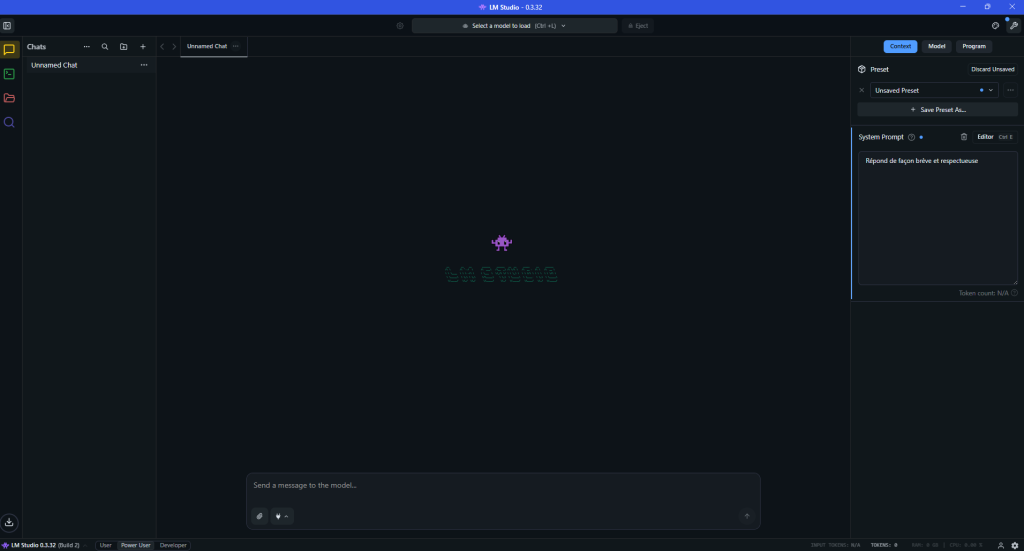 - Démarrer : Le modèle se charge. Une fois que la zone de texte inférieure indique « Prompt », vous pouvez commencer à interagir !